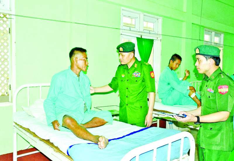 ကချင်ပြည်နယ် မြစ်ကြီးနားမြို့ရှိ တပ်မတော်ဆေးရုံ၊ ရှမ်းပြည်နယ် (တောင်ပိုင်း) နမ့်စန်မြို့ရှိ တပ်မတော်ဆေးရုံ၊ ရန်ကုန်တိုင်းဒေသကြီး မင်္ဂလာဒုံမြို့နယ်ရှိ တပ်မတော်အရိုးရောဂါအထူးကုဆေးရုံကြီး (ခုတင်-၅၀၀) နှင့် တပ်မတော်ဆေးရုံကြီး (ခုတင်-၁၀၀၀)၊ မကွေးတိုင်းဒေသကြီး မကွေးမြို့ရှိ တပ်မတော်ဆေးရုံတို့၌ တက်ရောက်ဆေးကုသမှုခံယူလျက်ရှိသော အရာရှိ၊ စစ်သည်၊ မိသားစုများ၊ စစ်မှုထမ်းဟောင်းအဖွဲ့ဝင်များ၊ ပြည်သူ့စစ် (ဌာနေ) တပ်ဖွဲ့ဝင်များနှင့် ဒေသခံပြည်သူများအား ယနေ့တွင် သက်ဆိုင်ရာတိုင်းစစ်ဌာနချုပ်များမှ တိုင်းမှူးများနှင့် တာဝန်ရှိသူများက သွားရောက်ကြည့်ရှု၍ တစ်ဦးချင်း၏ ရောဂါဖြစ်ပွားမှု၊ ဆေးကုသပေးထားမှုနှင့် ကျန်းမာရေးတိုးတက်ကောင်းမွန်မှု အခြေအနေများကို ရင်းရင်းနှီးနှီး မေးမြန်းအားပေးစကားပြောကြားပြီး စားသောက်ဖွယ်ရာများ ပေးအပ်သည်။