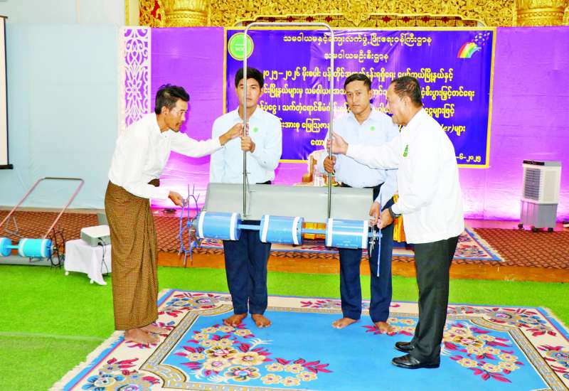 သမဝါယမအသင်းပိုင်ငွေဖြင့် မိုးစပါးစိုက်ပျိုးရေးစီမံကိန်းဆောင်ရွက်မည့် မန္တလေးတိုင်းဒေသကြီး ရမည်းသင်းခရိုင်အတွင်းရှိ ပျော်ဘွယ်မြို့နယ်နှင့် ရမည်းသင်းမြို့နယ်တို့မှ မိုးစပါးစိုက်သမဝါယမ အသင်းသားတောင်သူများသို့ အထွက်တိုးမျိုး၊ သွင်းအားစုနှင့် မျိုးစေ့ချကိရိယာပေးအပ်ပွဲ အခမ်းအနားကို ယနေ့မွန်းလွဲပိုင်းတွင် ပျော်ဘွယ်မြို့နယ် ကထိန်ရာပြည့်သာသနာ့ဗိမာန်တော်၌ ကျင်းပရာ သမဝါယမနှင့်ကျေးလက်ဖွံ့ဖြိုးရေးဝန်ကြီးဌာန ပြည်ထောင်စုဝန်ကြီး ဦးလှမိုး၊ ညွှန်ကြားရေးမှူးချုပ်များ၊ တာဝန်ရှိသူများ တက်ရောက်ကြသည်။