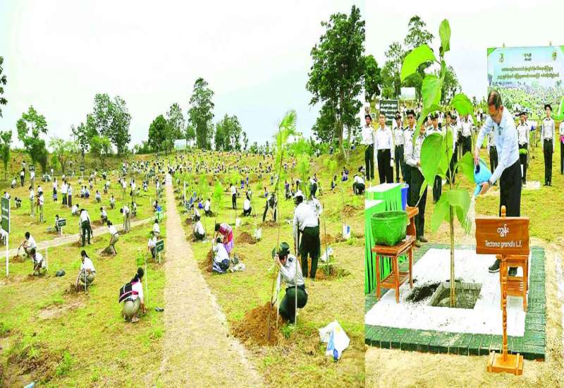 သယံဇာတနှင့်သဘာဝပတ်ဝန်းကျင်ထိန်းသိမ်းရေးဝန်ကြီးဌာန ၂၀၂၅ ခုနှစ် မိုးရာသီ ပထမအကြိမ် စုပေါင်းသစ်ပင်စိုက်ပျိုးပွဲကို ယနေ့နံနက်ပိုင်းတွင် ပြည်ထောင်စုနယ်မြေ နေပြည်တော် ဒက္ခိဏသီရိမြို့နယ် ရန်အောင်မြင်ကြိုးဝိုင်း အကွက်အမှတ်-၁၄ ၌ကျင်းပရာ ပြည်ထောင်စုဝန်ကြီး ဦးခင်မောင်ရီ၊ ဒုတိယဝန်ကြီး ဦးမင်းသူ၊ အမြဲတမ်းအတွင်းဝန်နှင့် ဌာနဆိုင်ရာ တာဝန်ရှိသူများ၊ ဝန်ကြီးဌာနမှ အရာထမ်းအမှုထမ်းများ၊ သစ်တောနှင့် ပတ်ဝန်းကျင်ဆိုင်ရာတက္ကသိုလ်မှ ဆရာ ဆရာမများနှင့် ကျောင်းသား ကျောင်းသူများ တက်ရောက်သည်။