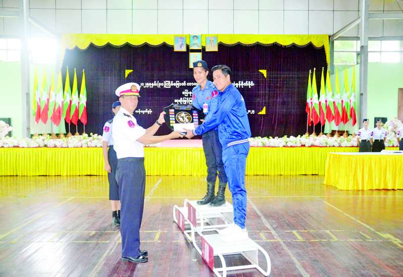 ၂၀၂၅ ခုနှစ် ကာကွယ်ရေးဦးစီးချုပ် (ရေ) တံခွန်စိုက်ဒိုင်းပြေးခုန်ပစ်ပြိုင်ပွဲဆုပေးပွဲကို ယနေ့ညနေပိုင်းတွင် ဧရာဝတီရေတပ်စခန်းဌာနချုပ် သီဟသူရထွန်းတင်ခန်းမ၌ ပြုလုပ်ရာ ကာကွယ်ရေးဦးစီးချုပ် (ရေ) ကိုယ်စား နယ်မြေခံရေတပ်ကွပ်ကဲမှုဌာနချုပ်ကွပ်ကဲမှုဌာန ချုပ်မှူး ဗိုလ်မှူးချုပ် သိန်းထူးနှင့် အရာရှိ၊ စစ်သည်၊ မိသားစုများ၊ ဒိုင်အဖွဲ့ဝင်များနှင့် ပြိုင်ပွဲဝင်အားကစားသမားများ တက်ရောက်ကြသည်။
