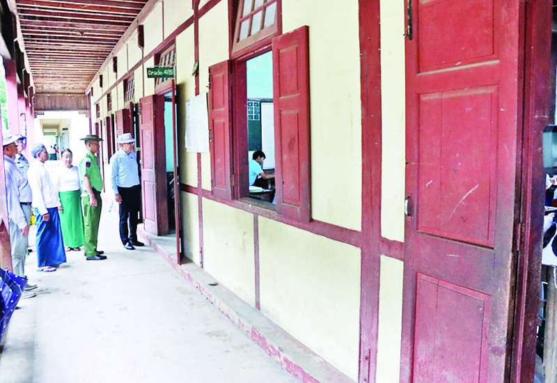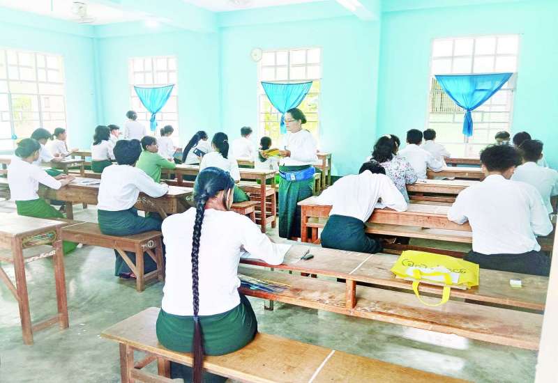 ပညာရေးဝန်ကြီးဌာန ဒုတိယဝန်ကြီး ဒေါက်တာဇော်မြင့်နှင့် ဦးနေမျိုးလှိုင်သည် ပညာရေးဝန်ကြီးဌာနရှိ ဦးစီးဌာနများမှ ညွှန်ကြားရေးမှူးချုပ်များ၊ နေပြည်တော်ကောင်စီနယ်မြေ ပညာရေးမှူးနှင့်အတူ ယနေ့နံနက်ပိုင်းတွင် နေပြည်တော်ကောင်စီနယ်မြေ ဇေယျာသီရိမြို့နယ် အမှတ် (၁) အခြေခံပညာအထက်တန်းကျောင်းရှိ တက္ကသိုလ်ဝင်စာမေးပွဲစာစစ်ဌာနသို့ ရောက်ရှိကာ တက္ကသိုလ်ဝင်စာမေးပွဲပထမနေ့ မြန်မာစာဘာသာ ဖြေဆိုနေမှုကို လှည့်လည်ကြည့်ရှုအားပေးသည်။