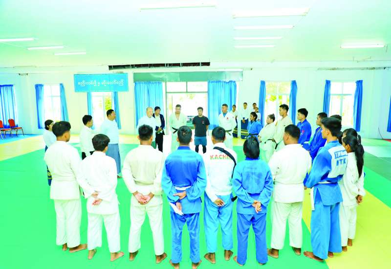 အားကစားနှင့်လူငယ်ရေးရာဝန်ကြီးဌာန ပြည်ထောင်စုဝန်ကြီး Jeng Phang နော်တောင်သည် ဒုတိယဝန်ကြီး ဦးဇင်မင်းထက်နှင့်အတူ ယနေ့နံနက်ပိုင်းတွင် နေပြည်တော်အားကစားလေ့ကျင့်ရေးစခန်း (Gold Camp) နှင့် လူငယ်အားကစားလေ့ကျင့်ရေးစခန်း (Youth Camp) တို့မှ ဂျူဒို၊ အလေးမနှင့် လက်ဝှေ့အားကစားအဖွဲ့များ၏ လေ့ကျင့်နေမှုများကို ကြည့်ရှုအားပေးသည်။