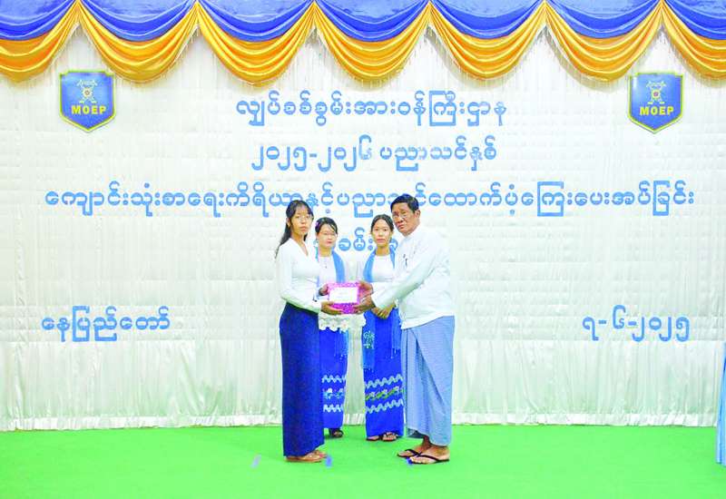 ၂၀၂၅-၂၀၂၆ ပညာသင်နှစ် တက္ကသိုလ်၊ ကောလိပ်နှင့်အခြေခံပညာမူလတန်းမှ အထက်တန်းအဆင့်ကျောင်းများသို့ တက်ရောက်ပညာသင်ကြားလျက်ရှိသည့် နယ်စပ်ရေးရာဝန်ကြီးဌာနမှ ဝန်ထမ်းများ၏ သားသမီးများ ပညာသင်စရိတ်၊ ကျောင်းဝတ်စုံနှင့် ဗလာစာအုပ်များ ပေးအပ်ခြင်းအခမ်းအနားကို ယနေ့နံနက်ပိုင်းတွင် နယ်စပ်ရေးရာဝန်ကြီးဌာန ဧရာဝတီခန်းမ၌ ကျင်းပသည်။