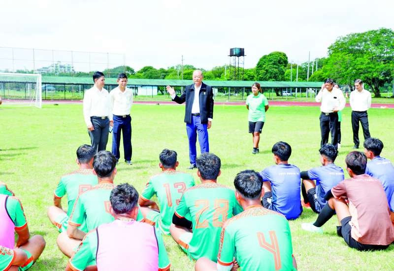 မြန်မာနိုင်ငံအိုလံပစ်ကော်မတီဥက္ကဋ္ဌ အားကစားနှင့် လူငယ်ရေးရာဝန်ကြီးဌာန ပြည်ထောင်စုဝန်ကြီး Jeng Phang နော်တောင်သည် ယနေ့နံနက် ၇ နာရီခွဲတွင် ရန်ကုန်မြို့ တာမွေမြို့နယ် ကျိုက္ကဆံကွင်းအတွင်းရှိ ဘောလုံးကွင်းအမှတ်(၁)၌ Myanmar National League 2025-2026 I.S.P.E FC အမျိုးသားဘောလုံးအသင်းနှင့် Myanmar Women League 2025-2026 I.S.P.E FC အမျိုးသမီးဘောလုံးအသင်းတို့၏ လေ့ကျင့်နေမှုကို ကြည့်ရှုအားပေးသည်။