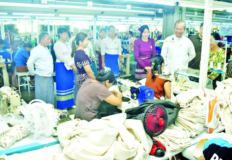အလုပ်သမားဝန်ကြီးဌာန ဒုတိယဝန်ကြီး ဦးဝင်းရှိန်သည် ရန်ကုန်တိုင်းဒေသကြီးရှိ အလုပ်သမားရေးရာဌာနများမှ တာဝန်ခံအရာထမ်းများနှင့်အတူ ယနေ့နံနက်ပိုင်းတွင် ရန်ကုန်တိုင်းဒေသကြီး လှိုင်သာယာ(အနောက်ပိုင်း)မြို့နယ် ငွေပင်လယ်စက်မှုဇုန်ရှိ Hanfex Co., Ltd. အထည်ချုပ် စက်ရုံလုပ်ငန်းခွင်အတွင်း လှည့်လည်ကြည့်ရှုသည်။
