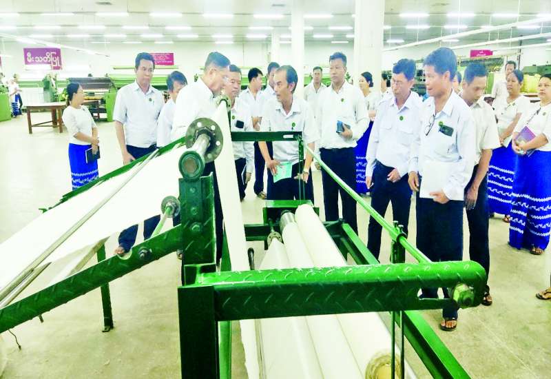 စက်မှုဝန်ကြီးဌာန ဒုတိယဝန်ကြီး ဦးရင်မောင်ညွန့်သည် မေ ၃၁ ရက် မွန်းလွဲပိုင်းက မကွေးတိုင်းဒေသကြီး ပွင့်ဖြူမြို့ရှိ အမှတ်(၄) အထည်စက်ရုံ(ပွင့်ဖြူ)မှ စက်ရုံမှူး၊ တာဝန်ရှိသူများနှင့် တွေ့ဆုံသည်။