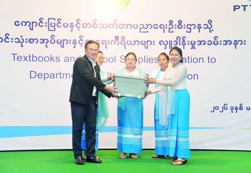 အကြောင်းအမျိုးမျိုးကြောင့် ကျောင်းသင်ပညာရေးနည်းလမ်းနှင့် မတက်ရောက်နိုင်သည့် ကျောင်းနေ အရွယ်လွန်ကလေးများ၊ ကျောင်းပြင်ပရောက်ကလေးများနှင့် ဦးတည်အုပ်စုနှင့်ကိုက်ညီသည့် ကလေးများကို ဒုတိယအကြိမ်သင်ယူမှုအခွင့်အလမ်းဖန်တီးပေးသည့် တန်းညှိပညာရေး အစီအစဉ်၏ ကျောင်းပြင်ပ မူလတန်းပညာရေးသင်ကြားမည့် ကျောင်းသားကျောင်းသူများအတွက် ကျောင်းသုံးစာအုပ်များနှင့် စာရေးကိရိယာများ ပေးအပ်လှူဒါန်းပွဲကို ယနေ့နံနက်ပိုင်းတွင် ရန်ကုန်မြို့ ပြည်လမ်းရှိ ကျောင်းပြင်ပနှင့် တစ်သက်တာပညာရေးဦးစီးဌာန (ရန်ကုန်ရုံးခွဲ) ခန်းမ၌ ကျင်းပသည်။