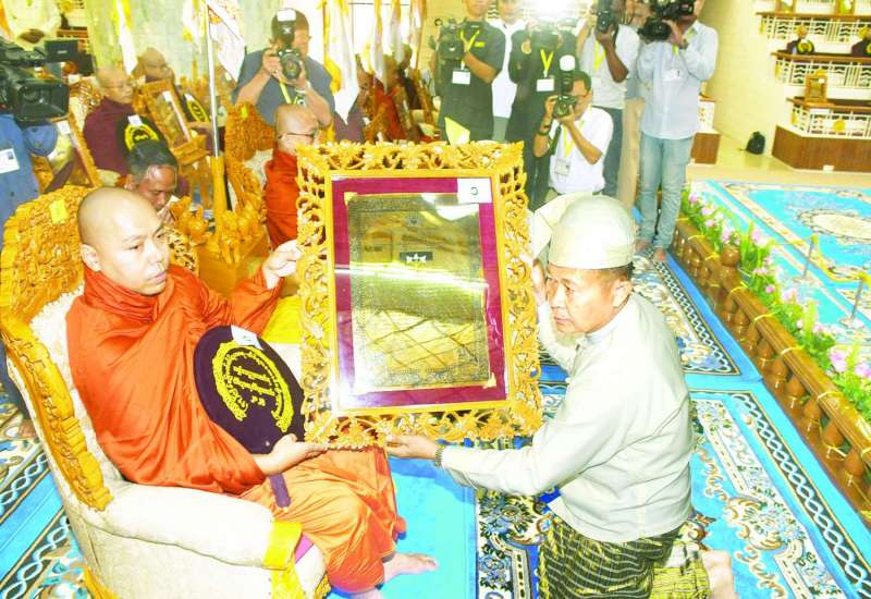 ပြည်ထောင်စုသမ္မတမြန်မာနိုင်ငံတော် သာသနာရေးနှင့်ယဉ်ကျေးမှုဝန်ကြီးဌာန သာသနာရေးဦးစီးဌာနက ကြီးမှူးကျင်းပသည့် (၇၇) ကြိမ်မြောက် တိပိဋကဓရ တိပိဋကကောဝိဒ ရွေးချယ်ရေးစာမေးပွဲတွင် အောင်မြင်တော်မူကြသည့် သာသနာ့အာဇာနည်အရှင်သူမြတ်အပါး (၉၇)ပါးတို့အား ချီးကျူးပူဇော်ပွဲနှင့် အောင်လက်မှတ်ဆက်ကပ်လှူဒါန်းပွဲ မဟာမင်္ဂလာအခမ်းအနားကို ယနေ့နံနက်ပိုင်းတွင် ရန်ကုန်မြို့သီရိမင်္ဂလာကမ္ဘာအေးကုန်းမြေရှိ မဟာပါသာဏလိုဏ်ဂူသိမ်တော်ကြီးအတွင်း၌ ကျင်းပသည်။