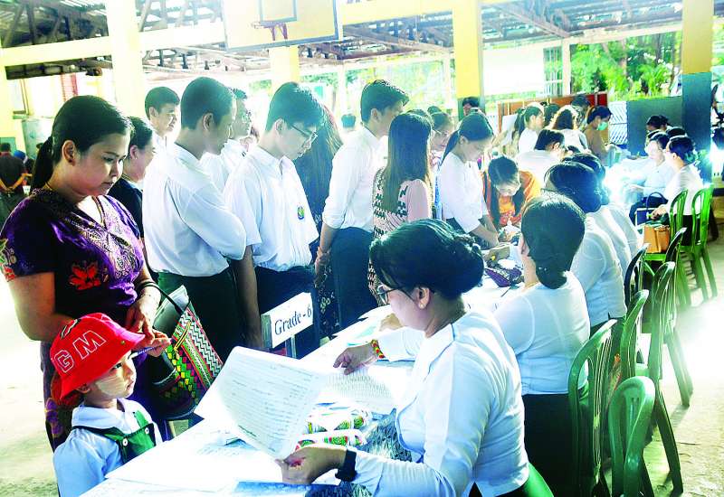 နေပြည်တော်ကောင်စီနယ်မြေအတွင်းရှိ အခြေခံပညာကျောင်း များတွင် ယနေ့နံနက်ပိုင်းမှစတင်၍ ကျောင်းအပ်နှံရေး လုပ်ငန်းစဉ်များကို စတင်ဆောင်ရွက်လျက်ရှိရာ ကျောင်းသားမိဘများနှင့် ကျောင်းသား ကျောင်းသူများအား တာဝန်ကျဆရာဆရာမများက ကျောင်းအပ်နှံရာတွင် စနစ်တကျအဆင်ပြေချောမွေ့စေရေး ဆောင်ရွက်ပေးကြသည်။