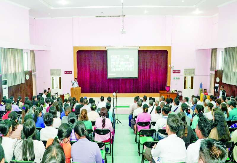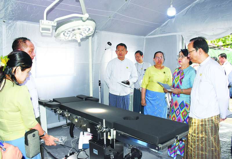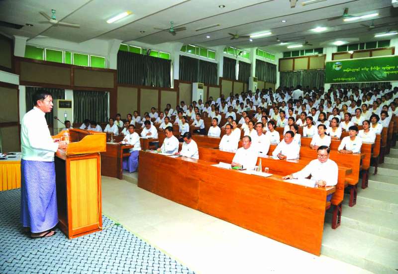 ကျန်းမာရေးဝန်ကြီးဌာန ပြည်ထောင်စုဝန်ကြီး ပါမောက္ခဒေါက်တာ သက်ခိုင်ဝင်းသည် ယနေ့တွင် ရန်ကုန်ပြည်သူ့ဆေးရုံကြီး Training Center ၌ကျင်းပသော (Urban Health Center-UHC) ဒေသန္တရကျန်းမာရေးဌာနများတွင် ကျန်းမာရေးစောင့်ရှောက်မှုလုပ်ငန်းများ တိုးမြှင့်ဆောင်ရွက်နိုင်ရေး လုပ်ငန်းညှိနှိုင်းအစည်းအဝေးသို့ တက်ရောက်အမှာစကားပြောကြားသည်။
