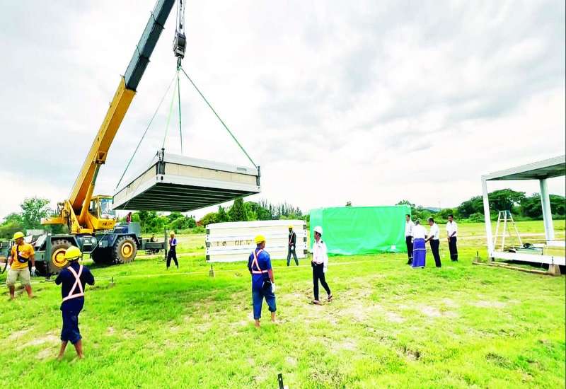 နိုင်ငံတော်စီမံအုပ်ချုပ်ရေးကောင်စီအဖွဲ့ဝင် ဒုတိယဝန်ကြီးချုပ်နှင့်ပို့ဆောင်ရေးနှင့်ဆက်သွယ် ရေးဝန်ကြီးဌာန ပြည်ထောင်စုဝန်ကြီး ဗိုလ်ချုပ်ကြီး မြထွန်းဦးသည် ယနေ့နံနက်ပိုင်းတွင် နေပြည်တော်ကောင်စီနယ်မြေအတွင်း အမျိုးသားသဘာဝဘေးအန္တရာယ်ဆိုင်ရာ စီမံခန့်ခွဲမှုကော်မတီက စီစဉ်ခွဲဝေပေးထားသည့် Modular House များကို ဝန်ကြီးဌာနအောက်ရှိ မြန်မာ့မီးရထားနှင့် ကုန်းလမ်းပို့ဆောင်ရေးညွှန်ကြားမှုဦးစီးဌာနပိုင် မြေနေရာများ၌ ငလျင်ဘေးသင့်ဝန်ထမ်းမိသားစုများ နေထိုင်နိုင်ရန်အတွက် တည်ဆောက်နေမှုလုပ်ငန်းခွင်များသို့ လှည့်လည်ကြည့်ရှုစစ်ဆေးသည်။