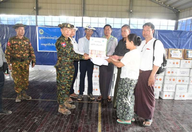 ရန်ကုန်မြို့ရှိ မြန်မာနိုင်ငံဆိုင်ရာ တရုတ်ပြည်သူ့သမ္မတနိုင်ငံသံရုံးနှင့် MYANMAR-CHINA (JIANGSU) CHAMBER OF COMMERCE တို့က ရင်းနှီးမြှုပ်နှံမှုနှင့်နိုင်ငံခြားစီးပွားဆက်သွယ်ရေးဝန်ကြီးဌာန၏ ငလျင်ဘေးသင့်ဝန်ထမ်းများအတွက် လျှပ်စစ်ရေနွေးအိုး၊ လေအေးပေးပန်ကာ၊ ဆိုလာမီးလုံး၊ စောင်၊ ခြင်ထောင်၊ ဖျာ၊ ဆပ်ပြာ၊ ခေါင်းလျှော်ရည်စသည့် လူသုံးကုန်ပစ္စည်းအမျိုးအစားရှစ်မျိုးကို ယနေ့နံနက်ပိုင်းတွင် ရင်းနှီးမြှုပ်နှံမှုနှင့်နိုင်ငံခြားစီးပွားဆက်သွယ်ရေးဝန်ကြီးဌာန ရုံး အမှတ် (၁) သို့ လာရောက်လှူဒါန်းသည်။