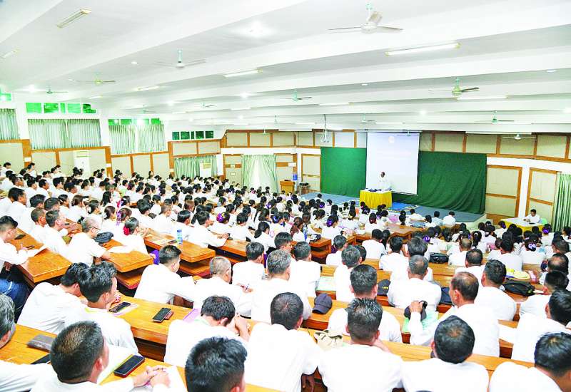 အခြေခံပညာနှင့်စက်မှု၊ စိုက်ပျိုး၊ မွေးမြူရေးအထက်တန်းကျောင်းများတွင် Grade-10, Grade-11, Grade-12 သင်ကြားမည့် သင်ကြားရေးမွမ်းမံ သင်တန်းတက်ရောက်နေသော ဆရာ ဆရာမများနှင့် တွေ့ဆုံပွဲအခမ်းအနားကို ယနေ့နံနက်ပိုင်းက နေပြည်တော် ရေဆင်းစိုက်ပျိုးရေးတက္ကသိုလ်၌ကျင်းပရာ စိုက်ပျိုးရေး၊ မွေးမြူရေးနှင့်ဆည်မြောင်း ဝန်ကြီးဌာန ပြည်ထောင်စုဝန်ကြီး ဦးမင်းနောင်၊ ညွှန်ကြားရေးမှူးချုပ်များ၊ ပါမောက္ခချုပ်များ၊ ပါမောက္ခဌာနမှူးများ၊ ညွှန်ကြားရေးမှူးများ သင်တန်းပို့ချမည့် ဆရာဆရာမများ၊ တိုင်းဒေသကြီး/ပြည်နယ်အသီးသီးမှ သင်တန်းသား သင်တန်းသူ ဆရာ ဆရာမများ တက်ရောက်ကြသည်။