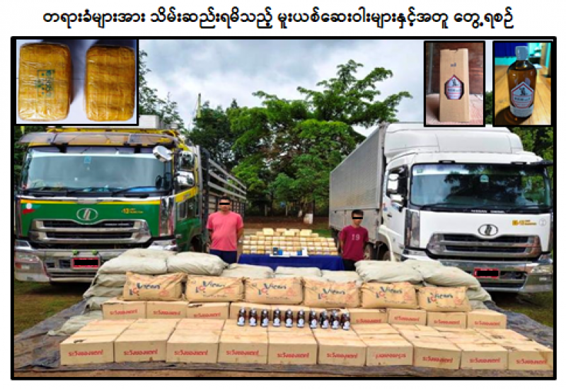 ရွာငံမြို့နယ်နှင့် အမရပူရမြို့နယ်တို့တွင် ငွေကျပ် ၁၀၈ သိန်း တန်ဖိုးရှိ ဘိန်းစိမ်းများနှင့် တာချီလိတ်မြို့နယ်တွင် ငွေကျပ်သိန်း ၈၆၀ တန်ဖိုးရှိ စိတ်ပြောင်းဆေးဝါးများ သိမ်းဆည်းရမိခဲ့ကြောင်း မြန်မာနိုင်ငံရဲတပ်ဖွဲ့မှ သိရသည်။