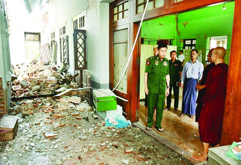 မြန်မာနိုင်ငံတွင် လှုပ်ခတ်ခဲ့သော မန္တလေးငလျင်ကြီးကြောင့် လမ်းတံတား၊ အဆောက်အအုံများ ထိခိုက်ပျက်စီးခဲ့ရသည့်နေရာများ၌ ကူညီကယ်ဆယ်ရေးနှင့် ပြန်လည်ထူထောင်ရေးလုပ်ငန်းများကို တိုင်းစစ်ဌာနချုပ်အသီးသီးမှ တပ်မတော်သားများ၊ မြန်မာနိုင်ငံရဲတပ်ဖွဲ့ဝင်များ၊ မီးသတ်တပ်ဖွဲ့ဝင်များ၊ ပြည်ပနိုင်ငံများမှ ကူညီကယ်ဆယ်ရေးအဖွဲ့များ၊ ဌာနဆိုင်ရာဝန်ထမ်းများ၊ လူမှုကူညီရေးအသင်း/အဖွဲ့များနှင့် ဒေသခံပြည်သူများပူးပေါင်း၍ အချိန်နှင့်တစ်ပြေးညီ ကူညီဆောင်ရွက်ပေးလျက်ရှိသည်။