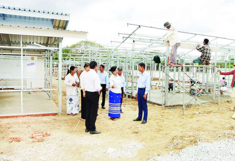 သမဝါယမနှင့်ကျေးလက်ဖွံ့ဖြိုးရေးဝန်ကြီးဌာန ဒုတိယဝန်ကြီး ဦးမြင့်စိုးသည် ယနေ့နံနက်ပိုင်းက နေပြည်တော်ကောင်စီနယ်မြေ ဒက္ခိဏသီရိမြို့နယ်တွင် အသေးစားစက်မှုလက်မှုလုပ်ငန်းဦးစီးဌာန ဝန်ထမ်းများအတွက် ယာယီဆောက်လုပ်နေရာချထားပေးခဲ့သော အမှုထမ်းနှင့် အရာထမ်း အိမ်ရာများသို့ သွားရောက်၍ ရေ၊ မီး အဆင်ပြေမှုရှိ/ မရှိ၊ သန့်စင်ခန်းများ ကောင်း မကောင်း လိုက်လံကြည့်ရှုစစ်ဆေးပြီး မိုးတွင်းရေမဝပ်စေရေးအတွက် ကြိုတင်စီမံဆောင်ရွက်ထားရန် မှာကြားသည်။