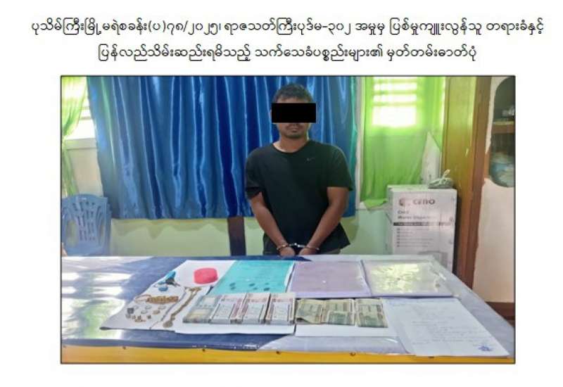 မန္တလေးတိုင်းဒေသကြီး၊ ပုသိမ်ကြီးမြို့နယ်၌ ဧပြီလ ၂၇ ရက်နေ့က အငြိမ်းစားပါမောက္ခ အမျိုးသမီး ၁ ဦးအား သတ်ဖြတ်မှုကျူးလွန်ခဲ့သူ တရားခံအမျိုးသား ၁ ဦးအား ဖော်ထုတ်ဖမ်းဆီးရမိခဲ့ကြောင်း သိရသည်။