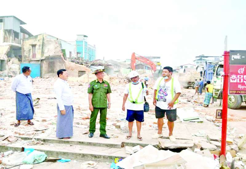 နေပြည်တော်ကောင်စီဝင် ဗိုလ်မှူးကြီးရဲမိုးနှင့် ဦးမြင့်စိုးသည် ယနေ့နံနက်ပိုင်းက မန္တလေးငလျင်ကြီးကြောင့် ထိခိုက်ခဲ့သည့် ပျဉ်းမနားမြို့နယ်အတွင်းရှိ နေရာများ ပြန်လည်ထူထောင်ရေး လုပ်ငန်းဆောင်ရွက်နေမှုကို ကွင်းဆင်းကြည့်ရှုသည်။