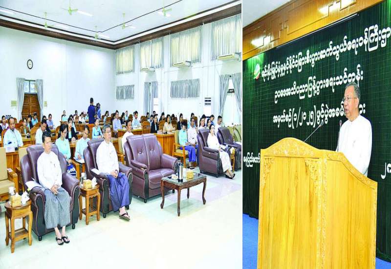 ရင်းနှီးမြှုပ်နှံမှုနှင့်နိုင်ငံခြားစီးပွားဆက်သွယ်ရေးဝန်ကြီးဌာန၏ ဥပဒေအသိပညာပြန့်ပွားရေးသင်တန်းအမှတ်စဉ် (၁/၂၀၂၅) သင်တန်းဖွင့်ပွဲအခမ်းအနားကို ယနေ့နံနက်ပိုင်းတွင် အဆိုပါဝန်ကြီးဌာန ရုံးအမှတ်(၁) နေပြည်တော်၌ ကျင်းပသည်။