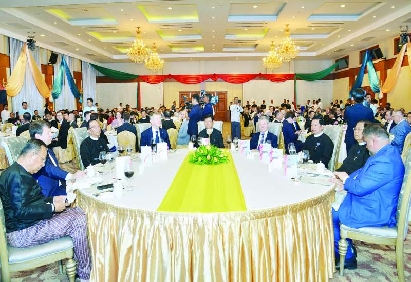 မြန်မာနိုင်ငံက အိမ်ရှင်အဖြစ်လက်ခံကျင်းပမည့် ပဉ္စမအကြိမ် ရုရှား-မြန်မာ အစိုးရအချင်းချင်း ကုန်သွယ်ရေးနှင့်စီးပွားရေးပူးပေါင်းဆောင်ရွက်ရေးကော်မရှင်အစည်းအဝေးသို့ တက်ရောက်ရန် နေပြည်တော်၌ ရောက်ရှိနေသည့် ရုရှားဖက်ဒရေးရှင်းနိုင်ငံ စီးပွားရေးဖွံ့ဖြိုးတိုးတက်မှုဝန်ကြီးဌာန ဝန်ကြီး H.E. Mr. Maxim RESHETNIKOV ဦးဆောင်သည့် ကိုယ်စားလှယ်အဖွဲ့အား ရင်းနှီးမြှုပ်နှံမှုနှင့် နိုင်ငံခြားစီးပွားဆက်သွယ်ရေးဝန်ကြီးဌာန ပြည်ထောင်စုဝန်ကြီး ဒေါက်တာကံဇော်က ယနေ့ညနေပိုင်းတွင် နေပြည်တော်ရှိ Horizon Lake View Resort ၌ ဂုဏ်ပြုညစာစားပွဲဖြင့် ကြိုဆိုတည်ခင်းဧည့်ခံသည်။