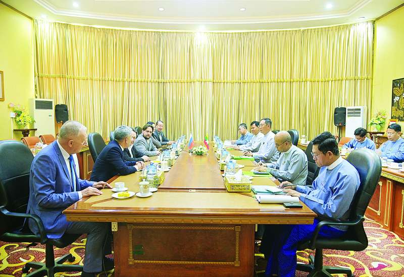 နိုင်ငံတော်စီမံအုပ်ချုပ်ရေးကောင်စီဥက္ကဋ္ဌ နိုင်ငံတော်ဝန်ကြီးချုပ် ဗိုလ်ချုပ်မှူးကြီး မင်းအောင်လှိုင်ထံသို့ ရုရှားဖက်ဒရေးရှင်းနိုင်ငံ၊ စီးပွားရေးဖွံ့ဖြိုးတိုးတက်မှုဝန်ကြီးဌာန၊ ဝန်ကြီး H.E. Maxim RESHETNIKOV ဦးဆောင်သည့်အဖွဲ့ဝင်များက ယနေ့မွန်းလွဲပိုင်းတွင် နိုင်ငံတော်စီမံအုပ်ချုပ်ရေးကောင်စီဥက္ကဋ္ဌရုံး၊ သံတမန်ဆောင်ဧည့်ခန်းမ၌ လာရောက်ဂါရဝပြုတွေ့ဆုံသည်။