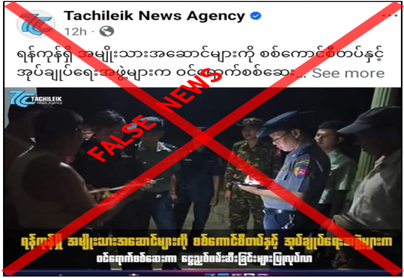 ရန်ကုန်တိုင်းဒေသကြီး၊ ရန်ကုန်မြို့အတွင်းရှိ အမျိုးသားအဆောင်များကို လုံခြုံရေးတပ်ဖွဲ့ဝင်များက ဧည့်စာရင်းအကြောင်းပြ၍ ဝင်ရောက်ဖမ်းဆီးခြင်းများပြုလုပ်နေပြီး ဇန်နဝါရီလ (၁၆) ရက်နေ့ ညပိုင်းက မြို့လယ်ရှိအဆောင်တစ်ခုကို ဝင်ရောက်စစ်ဆေး၍ ငွေမပေးနိုင်သူများကို ဖမ်းဆီးခေါ်ဆောင်သွားကြောင်း တရားမဝင်ပြည်ဖျက်မီဒီယာများက သတင်းအမှားများ မဟုတ်မမှန်ရေးသားထုတ်လွှင့် လျက်ရှိကြောင်းတွေ့ရှိရသည်။