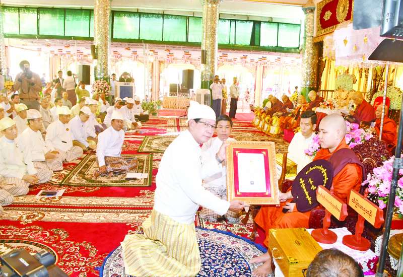 ၂၀၂၄ ခုနှစ် ဒီဇင်ဘာလအတွင်း ကျင်းပပြီးစီးခဲ့သော (၁၀၆) ကြိမ်မြောက် စေတိယင်္ဂဏစာလျှောက်မေးပွဲ၌ အောင်မြင်တော်မူကြသည့် သာသနာ့အာဇာနည် သံဃာတော် ၁၃ ပါးအား ဘွဲ့တံဆိပ်တော်နှင့် အောင်လက်မှတ် ဆက်ကပ်လှူဒါန်းပူဇော်သည့် စာအောင်ဆုနှင်း သဘင် မင်္ဂလာအခမ်းအနားကို ယနေ့နံနက်ပိုင်းတွင် ရွှေတိဂုံစေတီတော်ရင်ပြင် မြောက်ဘက် ချမ်းသာကြီးတန်ဆောင်း၌ ကျင်းပသည်။