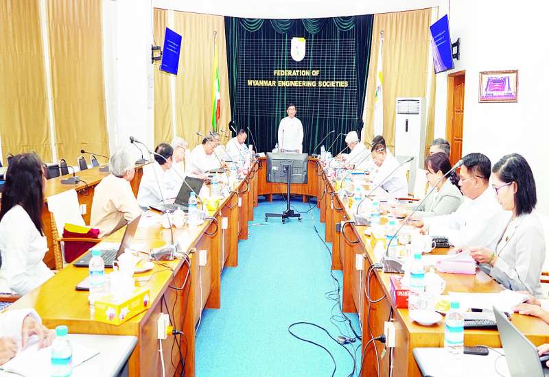 မြန်မာနိုင်ငံအဆောက်အအုံဆိုင်ရာ စံချိန်စံညွှန်း လမ်းညွှန်ချက်များ (Myanmar National Building Code) အကောင်အထည်ဖော်ရေး ဦးစီးကော်မတီ အစည်းအဝေး (၁/၂၀၂၅) ကို ယနေ့တွင် ရန်ကုန်မြို့ လှိုင်မြို့နယ်ရှိ မြန်မာနိုင်ငံအင်ဂျင်နီယာအသင်းချုပ်ရုံး Conference Room ၌ ကျင်းပပြုလုပ်သည်။