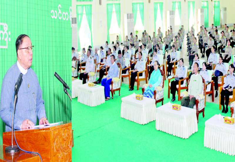 ဥပဒေအသိပညာပြန့်ပွားရေး သင်တန်းဖွင့်ပွဲအခမ်းအနားကို ယနေ့နံနက်ပိုင်းက လူမှုဝန်ထမ်း၊ ကယ်ဆယ်ရေးနှင့် ပြန်လည်နေရာချထားရေးဝန်ကြီးဌာန စုပေါင်းအစည်းအဝေးခန်းမ၌ ကျင်းပသည်။