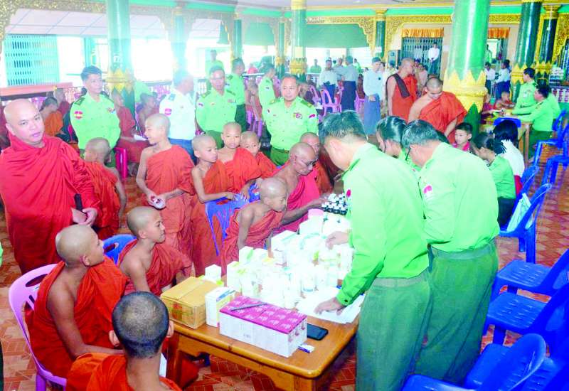 တနင်္သာရီတိုင်းဒေသကြီး မြိတ်မြို့တောကျောင်းပရိယတ္တိစာသင်တိုက်မှ သံဃာတော်များအား ယနေ့မွန်းလွဲပိုင်းတွင် ကမ်းရိုးတန်းဒေသတိုင်းစစ်ဌာနချုပ် နယ်မြေခံဆေးကုသရေးအဖွဲ့က အဆိုပါကျောင်းတိုက်၌ ကျန်းမာရေးစောင့်ရှောက်မှုလုပ်ငန်းများ ဆောင်ရွက်ပေးသည်။