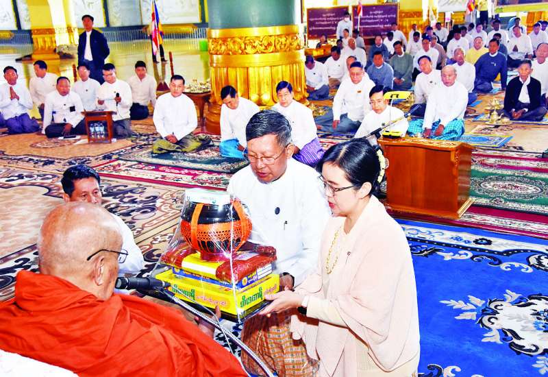 နေပြည်တော် ဥပ္ပါတသန္တိစေတီတော်မြတ်ကြီး ဗုဒ္ဓါဘိသေက အနေကဇာတင်လှူပူဇော်ခြင်းနှင့် ကုသိုလ်တော်ဆည်းပူးခြင်း မဟာမင်္ဂလာအခမ်းအနားကို ယနေ့နံနက်ပိုင်းတွင် ဥပ္ပါတသန္တိစေတီ တော်မြတ်ကြီးလိုဏ်တော်အတွင်း၌ကျင်းပရာ သာသနာရေးနှင့် ယဉ်ကျေးမှုဝန်ကြီးဌာန ပြည်ထောင်စုဝန်ကြီး ဦးတင်ဦးလွင်၊ နေပြည်တော်ကောင်စီဥက္ကဋ္ဌ ဦးသန်းထွန်းဦး၊ ဒုတိယဝန်ကြီး ဒေါ်နုမြဇံ၊ နေပြည်တော်ကောင်စီအဖွဲ့ဝင်များ၊ သာသနာရေးနှင့် ယဉ်ကျေးမှုဝန်ကြီးဌာန အမြဲတမ်းအတွင်းဝန်၊ ညွှန်ကြားရေးမှူးချုပ်များ၊ အလှူရှင်များနှင့် တာဝန်ရှိသူများ တက်ရောက်ကြည်ညိုကြသည်။