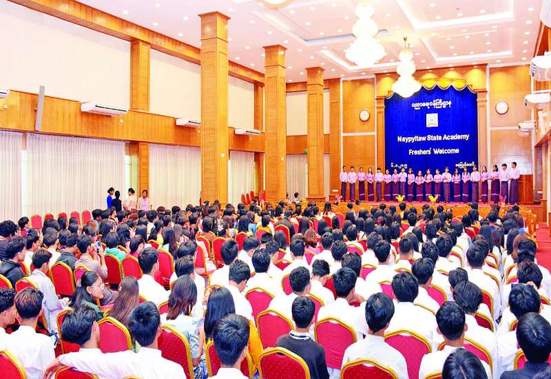 Naypyitaw State Academy ၏ ၂၀၂၄-၂၀၂၅ ပညာသင်နှစ် မောင်မယ်သစ်လွင် ကြိုဆိုပွဲအခမ်းအနားကို ယနေ့မွန်းလွဲ ၁ နာရီတွင် အဆိုပါတက္ကသိုလ်ရှိ ဘက်စုံသုံးခန်းမ၌ ကျင်းပရာ Naypyitaw State Academy ၏ ဒုတိယပါမောက္ခချုပ်များ၊ ပါမောက္ခ (ဌာနမှူး)များ၊ ဆရာ ဆရာမများ၊ ဝိဇ္ဇာ၊ သိပ္ပံ၊ လူမှုရေးပညာအထူးပြုမောင်မယ်သစ်လွင်ကျောင်းသား ကျောင်းသူများ၊ စီးပွားရေး၊ ဥပဒေ၊ အားကစား၊ ဆေးပညာအထူးပြု ကျောင်းသား ကျောင်းသူများနှင့် တာဝန်ရှိသူများ တက်ရောက်သည်။