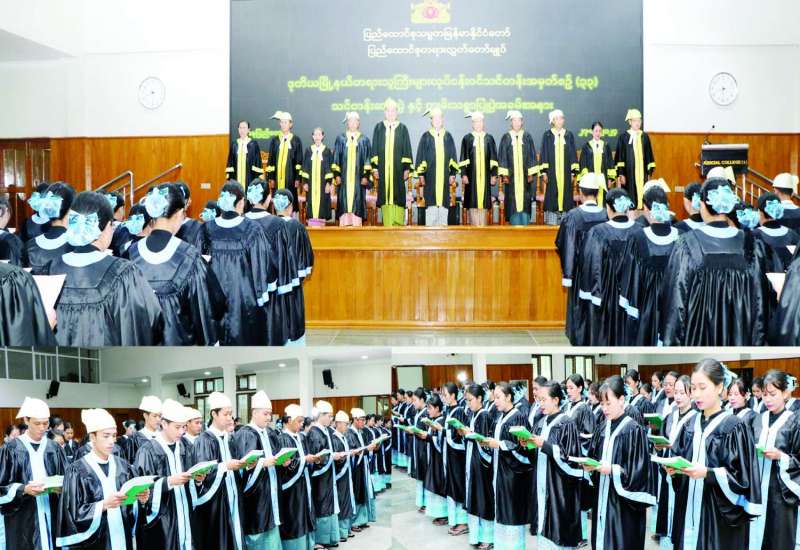 ဒုတိယမြို့နယ် တရားသူကြီးများ လုပ်ငန်းဝင်သင်တန်း အမှတ်စဉ် (၃၃) သင်တန်းဆင်းပွဲနှင့် ကျမ်းသစ္စာပြုပွဲ အခမ်းအနားကို ဒီဇင်ဘာ ၂၇ ရက် နံနက်ပိုင်းက ပြည်ထောင်စုတရားလွှတ်တော် ချုပ် Judicial College ၌ကျင်းပရာ ပြည်ထောင်စုတရားသူကြီးချုပ် ဦးသာဌေးတက်ရောက်၍ သင်တန်းဆင်းအမှာစကားပြောကြားခဲ့သည်။