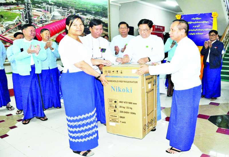 စက်မှုဝန်ကြီးဌာန စက်မှုကြီးကြပ်ရေးနှင့် စစ်ဆေးရေးဦးစီးဌာန၏ နှစ်သစ်ကူးမိတ်ဆုံစားပွဲနှင့် ကံစမ်းမဲဖောက်ခြင်းအခမ်းအနားကို ယနေ့မွန်းလွဲပိုင်းတွင် စက်မှုဝန်ကြီးဌာန ရုံးအမှတ် (၃၇) ၌ ကျင်းပရာ စက်မှုဝန်ကြီးဌာန ပြည်ထောင်စုဝန်ကြီး ဒေါက်တာချာလီသန်း၊ ဒုတိယဝန်ကြီး ဦးရင်မောင်ညွန့်၊ ပြည်ထောင်စုဝန်ကြီးရုံး၊ ဦးစီးဌာနနှင့်လုပ်ငန်းများမှ ညွှန်ကြားရေးမှူးချုပ်၊ ဦးဆောင်ညွှန်ကြားရေးမှူးများနှင့် အရာထမ်း၊ အမှုထမ်းများတက်ရောက်ကြသည်။