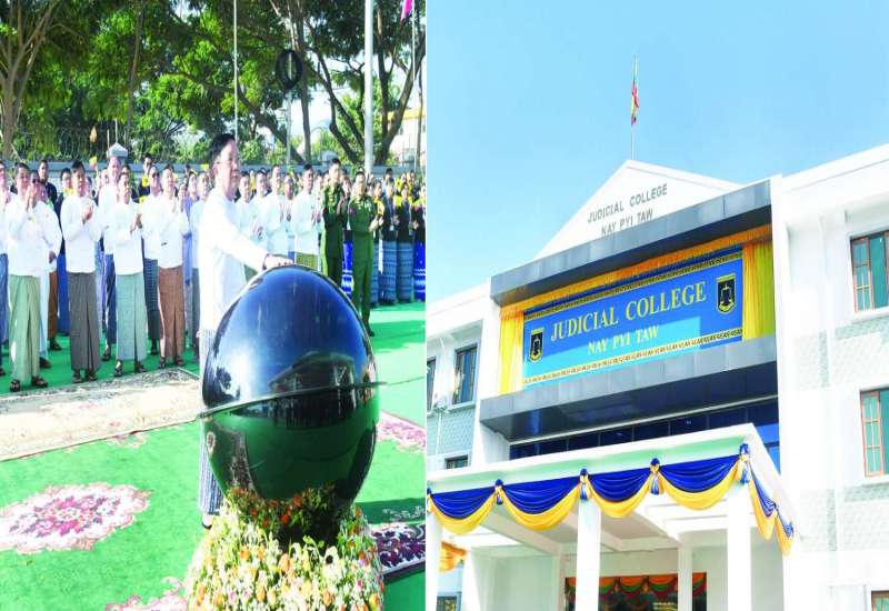နေပြည်တော်ကောင်စီနယ်မြေ၊ ဥတ္တရသီရိမြို့နယ်ရှိ ပြည်ထောင်စုတရားလွှတ်တော်ချုပ်၊ Judicial College အဆောက်အဦသစ် ဖွင့်ပွဲအခမ်းအနားကို ယနေ့နံနက်ပိုင်းတွင် ကျင်းပပြုလုပ်ရာ နိုင်ငံတော်စီမံအုပ်ချုပ်ရေးကောင်စီဥက္ကဋ္ဌ နိုင်ငံတော်ဝန်ကြီးချုပ် ဗိုလ်ချုပ်မှူးကြီး မင်းအောင်လှိုင်ကိုယ်စား နိုင်ငံတော်စီမံအုပ်ချုပ်ရေးကောင်စီအတွင်းရေးမှူး ဗိုလ်ချုပ်ကြီး အောင်လင်းဒွေး တက်ရောက်ဖွင့်လှစ်သည်။