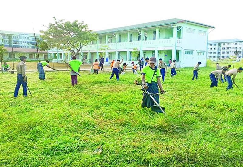 ၂၀၂၄ - ၂၀၂၅ ပညာသင်နှစ် တွင် တက်ရောက်ပညာသင်ကြားလျက်ရှိသည့် ကျောင်းသားကျောင်းသူများ အဆင်ပြေချောမွေ့စွာ ပညာသင်ကြားနိုင်ရေးနှင့် စာသင်ကျောင်းများ ဥပဓိရုပ် ကောင်းမွန်စေရေးအတွက် တိုင်းဒေသကြီးနှင့်ပြည်နယ်အသီးသီးရှိ အခြေခံပညာ‌ကျောင်းများနှင့် တက္ကသိုလ်များတွင် ကျောင်းပတ်ဝန်းကျင်သန့်ရှင်းသာယာလှပရေးလုပ်ငန်းများကို စုပေါင်းဆောင်ရွက်ပေးလျက်ရှိသည်။
