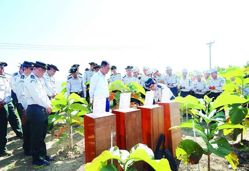 သယံဇာတနှင့်သဘာဝပတ်ဝန်းကျင် ထိန်းသိမ်းရေးဝန်ကြီးဌာန ပြည်ထောင်စုဝန်ကြီးဦးခင်မောင်ရီသည် ယနေ့နံနက်ပိုင်းတွင် နေပြည်တော်ဥတ္တရခရိုင် ဥတ္တရသီရိမြို့နယ်ရှိ သစ်တောသုတေသနစခန်းအမှတ် ၅၊ မိုးစွေသို့သွားရောက်၍ မြန်မာနိုင်ငံသစ်တော ကျောင်းအမှတ်စဉ် ၁၁၈ မှ သင်တန်းသားများနှင့် တွေ့ဆုံသည်။