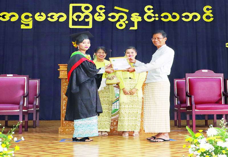သမဝါယမနှင့်ကျေးလက်ဖွံ့ဖြိုးရေးဝန်ကြီးဌာန၊ သမဝါယမနှင့်စီမံခန့်ခွဲမှုပညာတက္ကသိုလ် (စစ်ကိုင်း) ၏ အဋ္ဌမအကြိမ်မြောက်ဘွဲ့နှင်းသဘင်အခမ်းအနားကို ယမန်နေ့က အဆိုပါတက္ကသိုလ် ဘွဲ့နှင်းသဘင်ခန်းမ၌ကျင်းပရာ ဒုတိယဝန်ကြီးဦးမြင့်စိုး၊ ပါမောက္ခချုပ်ဒေါက်တာမို့မို့ရီ၊ ဒုတိယပါမောက္ခချုပ်၊ ပါမောက္ခဌာနမှူးများ၊ ဆရာဆရာမများ၊ ဖိတ်ကြားထားသည့် ဧည့်သည်တော်များ၊ ဘွဲ့ရကျောင်းသား ကျောင်းသူများနှင့် ၎င်းတို့၏မိဘများတက်ရောက်ကြသည်။