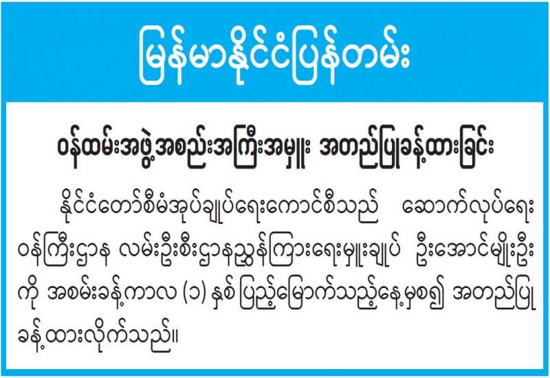 တရားမအမှုလိုက်(လက်တွေ့) ဘာသာရပ်သင်တန်းဖွင့်ပွဲနှင့် ဥပဒေရေးရာဝန်ကြီးဌာန ပြည်ထောင်စုဝန်ကြီးနှင့် ပြည်ထောင်စုရှေ့နေချုပ်နှင့် ရန်ကုန်တိုင်းဒေသကြီးအတွင်းရှိ ဥပဒေအရာရှိများ တွေ့ဆုံပွဲ အခမ်းအနားကို ယနေ့နံနက် ၁၁ နာရီတွင် ရန်ကုန်တိုင်းဒေသကြီး ဥပဒေချုပ်ရုံး မြေညီထပ်ရှိ အစည်းအဝေးခန်းမ၌ ကျင်းပသည်။