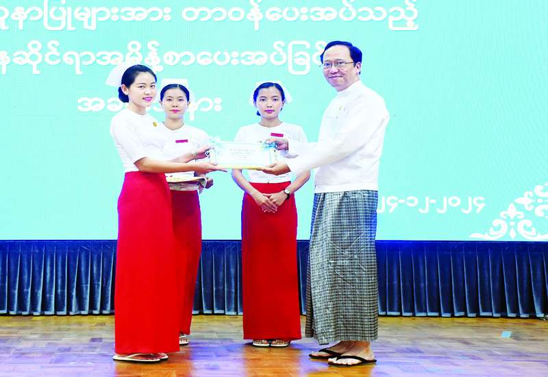 ကျန်းမာရေးဝန်ကြီးဌာန၏ သစ်လွင်သူနာပြုများ တာဝန်ပေးအပ်သည့် ဌာနဆိုင်ရာ အမိန့်စာပေးအပ်ခြင်း အခမ်းအနားကို ယနေ့မွန်းလွဲ ၂ နာရီတွင် ကျန်းမာရေးဝန်ကြီးဌာန ရုံးအမှတ်(၄) နေပြည်တော်၌ Hybrid စနစ်ဖြင့် ကျင်းပသည်။