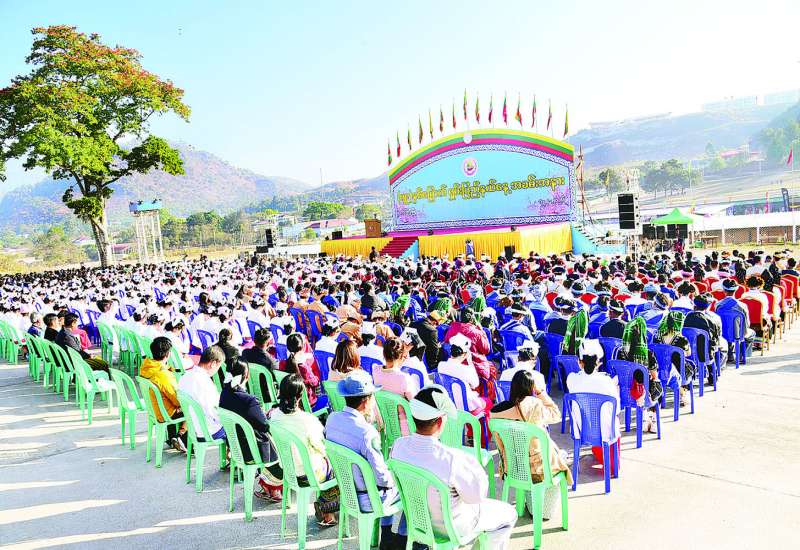 (၇၉) နှစ်မြောက် ရှမ်းပြည်နယ်နေ့အခမ်းအနားကို ယနေ့နံနက် ၈ နာရီက တောင်ကြီးမြို့ အဝေရာမီးပုံးပျံကွင်း၌ ကျင်းပရာ နိုင်ငံတော်လုံခြုံရေးနှင့် အေးချမ်းသာယာရေးကော်မရှင်အဖွဲ့ဝင် နယ်စပ်ရေးရာဝန်ကြီးဌာနနှင့် တိုင်းရင်းသားလူမျိုးများရေးရာဝန်ကြီးဌာန ပြည်ထောင်စုဝန်ကြီး ဒုတိယဗိုလ်ချုပ်ကြီး ရာပြည့်၊ သာသနာရေးနှင့်ယဉ်ကျေးမှုဝန်ကြီးဌာန ပြည်ထောင်စုဝန်ကြီး ဦးတင်ဦးလွင်၊ စိုက်ပျိုးရေး၊ မွေးမြူရေးနှင့်ဆည်မြောင်းဝန်ကြီးဌာန ပြည်ထောင်စုဝန်ကြီး ဦးမင်းနောင်၊ သိပ္ပံနှင့် နည်းပညာဝန်ကြီးဌာန ပြည်ထောင်စုဝန်ကြီး ဒေါက်တာမျိုးသိန်းကျော်၊ လူမှုဝန်ထမ်း၊ ကယ်ဆယ်ရေးနှင့် ပြန်လည်နေရာချထားရေးဝန်ကြီးဌာန ပြည်ထောင်စုဝန်ကြီး ဒေါက်တာစိုးဝင်း၊ ရှမ်းပြည်နယ်ဝန်ကြီးချုပ် ဦးအောင်အောင်၊ အရှေ့ပိုင်းတိုင်းစစ်ဌာနချုပ် တိုင်းမှူး၊ ပြည်နယ်တရားလွှတ်တော် တရားသူကြီးချုပ်၊ ပြည်နယ်ဝန်ကြီးများ၊ ပြည်နယ်ဥပဒေချုပ်၊ ရှမ်းပြည်နယ်အစိုးရအဖွဲ့အတွင်းရေးမှူး၊ ပြည်နယ်၊ ခရိုင်၊ မြို့နယ်အဆင့် ဌာနဆိုင်ရာများ၊ လူမှုရေးအသင်းအဖွဲ့များ၊ တိုင်းရင်းသားစာပေယဉ်ကျေးမှုအဖွဲ့များ၊ ရပ်ကွက်အုပ်ချုပ်ရေးမှူးများ၊ ဒေသခံပြည်သူများ၊ တာဝန်ရှိသူများ တက်ရောက်ကြသည်။