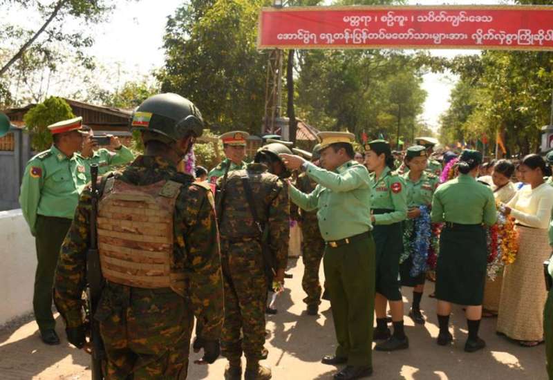 မန္တလေးတိုင်းဒေသကြီး မတ္တရာမြို့နယ်၊ စဉ့်ကူးမြို့နယ်၊ သပိတ်ကျင်းမြို့နယ် ဒေသတစ်ဝိုက်ရှိ လက်နက်ကိုင်အကြမ်းဖက်အဖွဲ့များနှင့် PDF အမည်ခံ အကြမ်းဖက်အဖွဲ့များအား ရွပ်ရွပ်ချွံချွံတိုက်ပွဲဝင်၍ အောင်ပွဲအလီလီရယူနိုင်ခဲ့သော ရှေ့တန်းပြန်နိုင်ငံ့သားကောင်း တပ်မတော်သားများအား ဂုဏ်ပြုကြိုဆိုခြင်းကို ယနေ့နံနက်ပိုင်းတွင် ရန်ကုန်တိုင်းဒေသကြီး၊ တိုက်ကြီးမြို့နယ်ရှိ နယ်မြေခံတပ်ရင်း၌ပြုလုပ်ရာ ရန်ကုန်တိုင်းစစ်ဌာနချုပ် တိုင်းမှူး ဗိုလ်ချုပ် ပြည့်စုံလင်းနှင့် ဌာနဆိုင်ရာတာဝန်ရှိသူများ၊ ကျောင်းသား/ကျောင်းသူများ၊ အနုပညာရှင်များနှင့် ဒေသခံပြည်သူများ တက်ရောက်ကြသည်။
