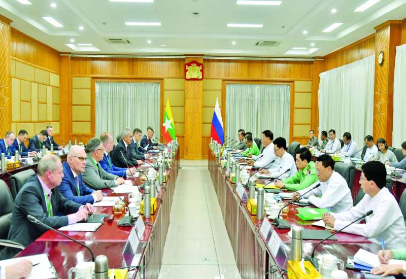 ကာကွယ်ရေးဝန်ကြီးဌာန ပြည်ထောင်စုဝန်ကြီး ဗိုလ်ချုပ်ကြီး မောင်မောင်အေးအား ရုရှားဖက်ဒရေးရှင်းနိုင်ငံ ဒုတိယကာကွယ်ရေးဝန်ကြီး Mr. Vasilii Sergeevich Osmakov က ယနေ့မွန်းလွဲပိုင်းတွင် ပြည်ထောင်စုဝန်ကြီးရုံးဧည့်ခန်းမ၌ ဂါရဝပြုလာရောက်တွေ့ဆုံသည်။