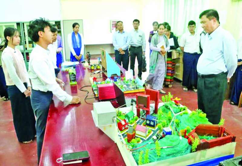 သိပ္ပံနှင့်နည်းပညာဝန်ကြီးဌာန ပြည်ထောင်စုဝန်ကြီး ဒေါက်တာမျိုးသိန်းကျော်သည် ယနေ့ နံနက်ပိုင်းတွင် နည်းပညာတက္ကသိုလ် (မန္တလေး) ၌ စာသင်ဆောင်များ၏ ပြုပြင်ပြီးစီးမှု အခြေအနေကို သွားရောက်ကြည့်ရှုစစ်ဆေးသည်။