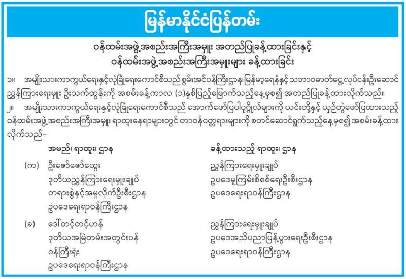 ဝန်ထမ်းအဖွဲ့အစည်းအကြီးအမှူး အတည်ပြုခန့်ထားခြင်းနှင့် ဝန်ထမ်းအဖွဲ့အစည်းအကြီးအမှူးများ ခန့်ထားခြင်း