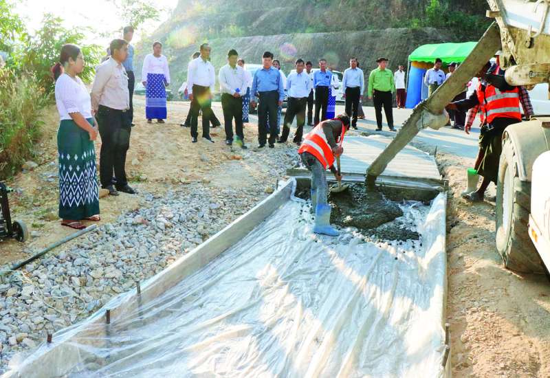ချောင်းဆုံမြို့နယ် ရွာလွတ် - ကတောင်စိန်ကျေးရွာချင်းဆက် တောင်ဖြတ်လမ်း၏ အကွေ့များသောနေရာများတွင် ကွန်ကရစ်လမ်းပခုံးခင်းခြင်းလုပ်ငန်းဆောင်ရွက်နေမှုကို ယနေ့နံနက်ပိုင်းက သမဝါယမနှင့်ကျေးလက်ဖွံ့ဖြိုးရေးဝန်ကြီးဌာန ဒုတိယဝန်ကြီး ဦးသိုက်စိုးသည် မွန်ပြည်နယ် လမ်းပန်းဆက်သွယ်ရေးဝန်ကြီး ဦးတင်စန်းနိုင်၊ တာဝန်ရှိသူများနှင့်အတူ သွားရောက်ကြည့်ရှုစစ်ဆေးသည်။