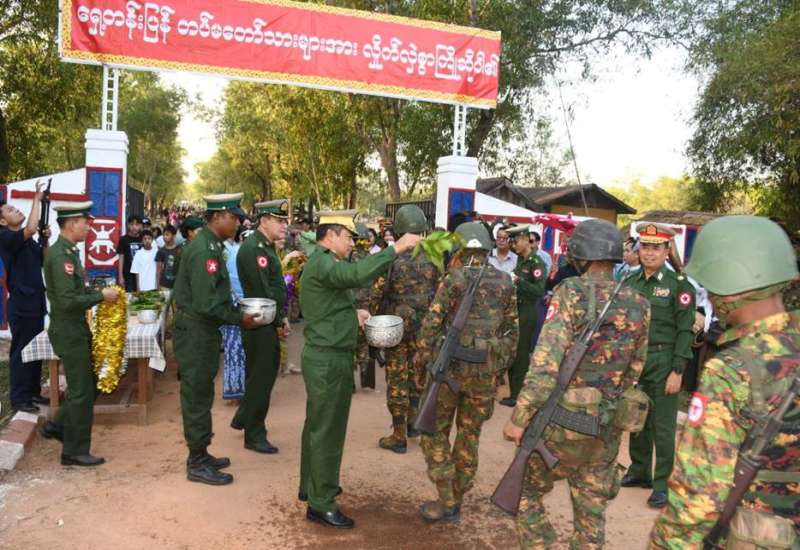 PDF ပြည်သူများအား နှိပ်စက်ညှင်းပန်း၍ ဒေသဖွံ့ဖြိုးတိုးတက်မှုကို ချွတ်ခြုံကျစေသည့် အကြမ်းဖက်လုပ်ရပ်များကို လုပ်ဆောင်ခဲ့သော ရှမ်းပြည်နယ် (မြောက်ပိုင်း)၊ ကျောက်မဲဒေသနှင့် နောင်ချိုမြို့နယ်၊ မန္တလေးတိုင်းဒေသကြီး ဝမ်းတွင်းမြို့နယ်နှင့် မလှိုင်မြို့နယ် ဒေသတစ်ဝိုက်ရှိ လက်နက်ကိုင်အကြမ်းဖက်အဖွဲ့များနှင့် အမည်ခံအကြမ်းဖက်အဖွဲ့များအား ရွပ်ရွပ်ချွံချွံတိုက်ပွဲဝင်၍ အောင်ပွဲအလီလီရယူနိုင်ခဲ့သော ရှေ့တန်းပြန်နိုင်ငံ့သားကောင်း တပ်မတော်သားများအား ဂုဏ်ပြုကြိုဆိုခြင်းကို ယနေ့ညနေပိုင်းတွင် ရန်ကုန်တိုင်းဒေသကြီး၊ တိုက်ကြီးမြို့နယ်ရှိ နယ်မြေခံတပ်ရင်း၌ ပြုလုပ်ရာ ရန်ကုန်တိုင်းစစ်ဌာနချုပ် တိုင်းမှူး ဗိုလ်ချုပ် ပြည့်စုံလင်းနှင့် ဌာနဆိုင်ရာ တာဝန်ရှိသူများ၊ ကျောင်းသား/ကျောင်းသူများ၊ အနုပညာရှင်များနှင့် ဒေသခံပြည်သူများ တက်ရောက်ကြသည်။
