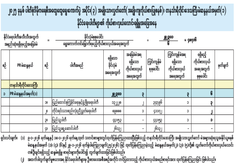အမျိုးသားလွှတ်တော်(အချိုးကျကိုယ်စားပြုစနစ်)၊ ပဲခူးတိုင်းဒေသကြီးမဲဆန္ဒနယ်အမှတ်(၂) နိုင်ငံရေးပါတီများ၏ ကိုယ်စားလှယ်လောင်းရရှိမှုအခြေအနေ