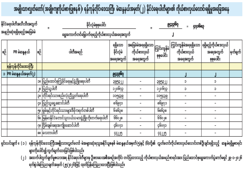 ၂၀၂၅ ခုနှစ် ပါတီစုံဒီမိုကရေစီအထွေထွေရွေးကောက်ပွဲ အပိုင်း(၃) အမျိုးသားလွှတ်တော်(အချိုးကျကိုယ်စားပြုစနစ်)၊ ရန်ကုန်တိုင်းဒေသကြီးမဲဆန္ဒနယ်အမှတ် (၁) နိုင်ငံရေးပါတီများ၏ ကိုယ်စားလှယ်လောင်းရရှိမှုအခြေအနေ