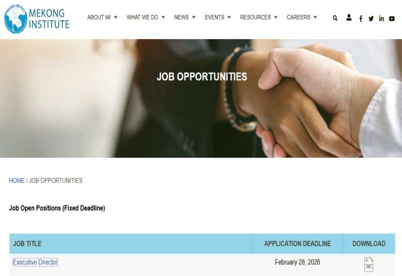 မဲခေါင်သိပ္ပံ (Mekong Institute-MI) ၏ လက်ရှိအမှုဆောင်ညွှန်ကြားရေးမှူး (Executive Director) သက်တမ်းမှာ ၂ဝ၂၆ ခုနှစ် ဩဂုတ်လတွင် ကုန်ဆုံးမည်ဖြစ်သဖြင့် Executive Director အသစ်ရွေးချယ်ခန့်အပ်နိုင်ရေး စီစဉ်ဆောင်ရွက်လျက်ရှိရာ စိတ်ပါဝင်စားပြီး သတ်မှတ်အရည်အချင်းများနှင့် ကိုက်ညီသည့် မြန်မာနိုင်ငံသားများ လျှောက်ထားနိုင်ကြောင်း ထုတ်ပြန်ထားသည်။